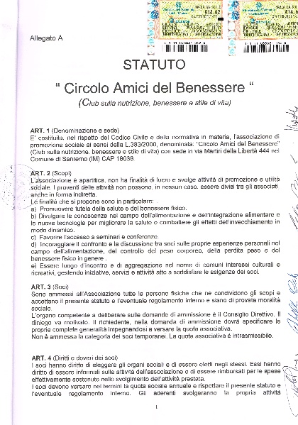 Statuto - Amici del benessere (Club sulla nutrizione e stile di vita)